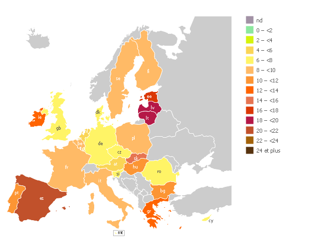 Registered Unemployment Rate In Europe Eu 27 September 2010