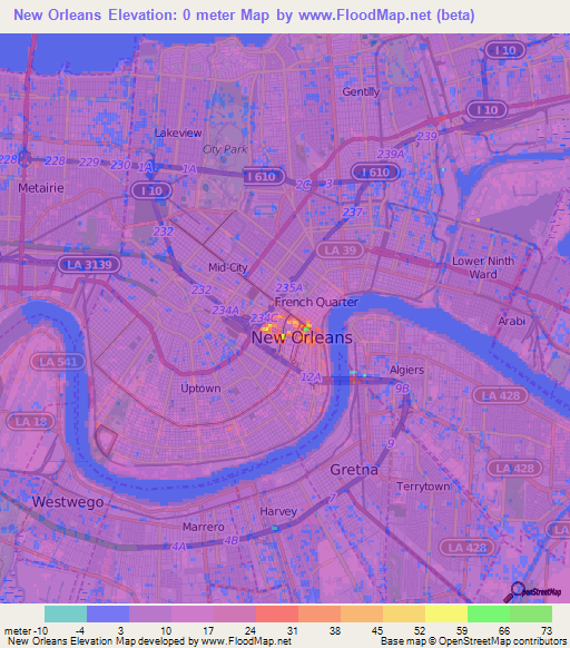 Topography based analysis of hurricane katrina inundation of new orleans by dean gesch the ready availability of high resolution high accuracy elevation data proved valuable for development of topography based products to determine rough estimates of the inundation of new orleans la from hurricane katrina. 29 86548 90 14003 30 19947 89 62518. Worldwide elevation map finder. Elevation latitude and longitude of new orleans orleans united states on the world topo map.