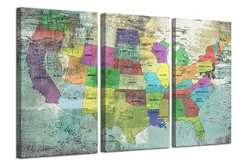 Us map canvas wall art. Only 3 left in stock order soon. Watercolor usa map united states of america map usa wall art colorful map canvas united states map map canvas united states print wallhappyart 4 5 out of 5 stars 45 49 27 57 96 57 96 15 off. Ardemy canvas wall art prints us map with states vintage abstract large size pictures retro united states blue map painting artwork gallery and framed posters for home office decor 16 x32 x3 panels. Proudly made in the usa our stretched canvas is created with only the highest standards.